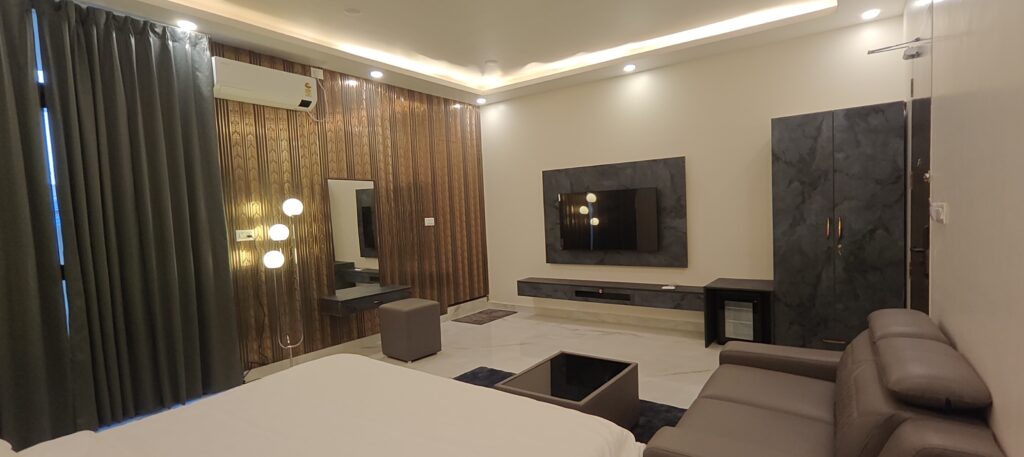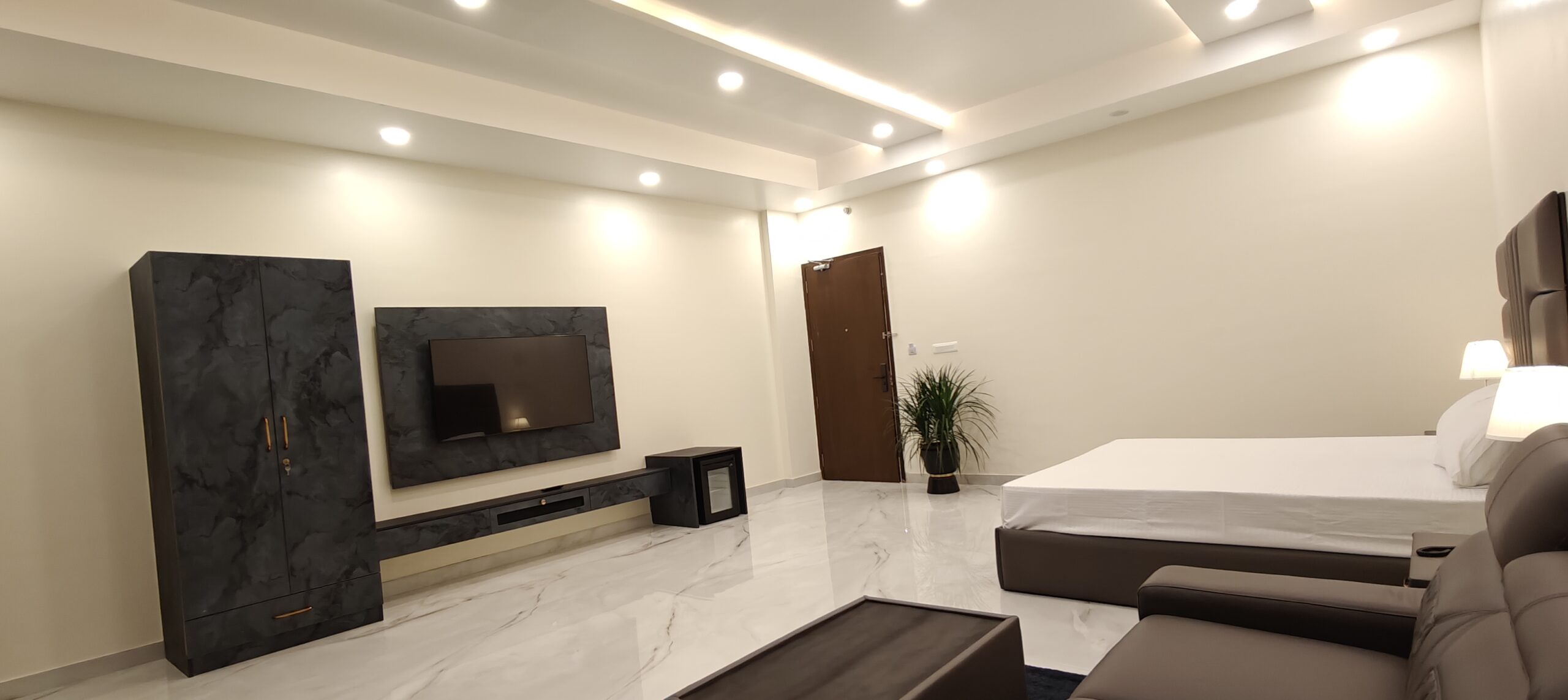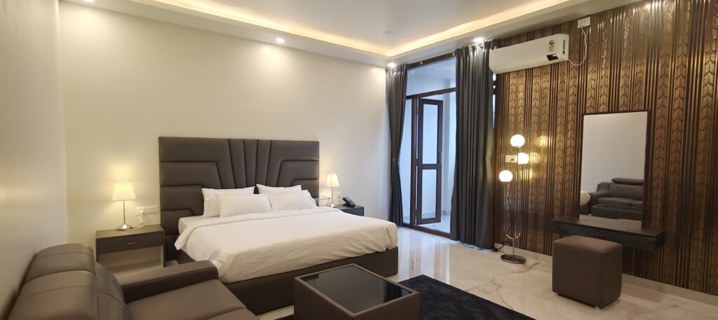 Welcome to our Executive Room, where luxury meets comfort. Spanning across 550 sq. ft., this thoughtfully designed space offers a perfect blend of elegance and functionality, ideal for business travellers and vacationers alike.