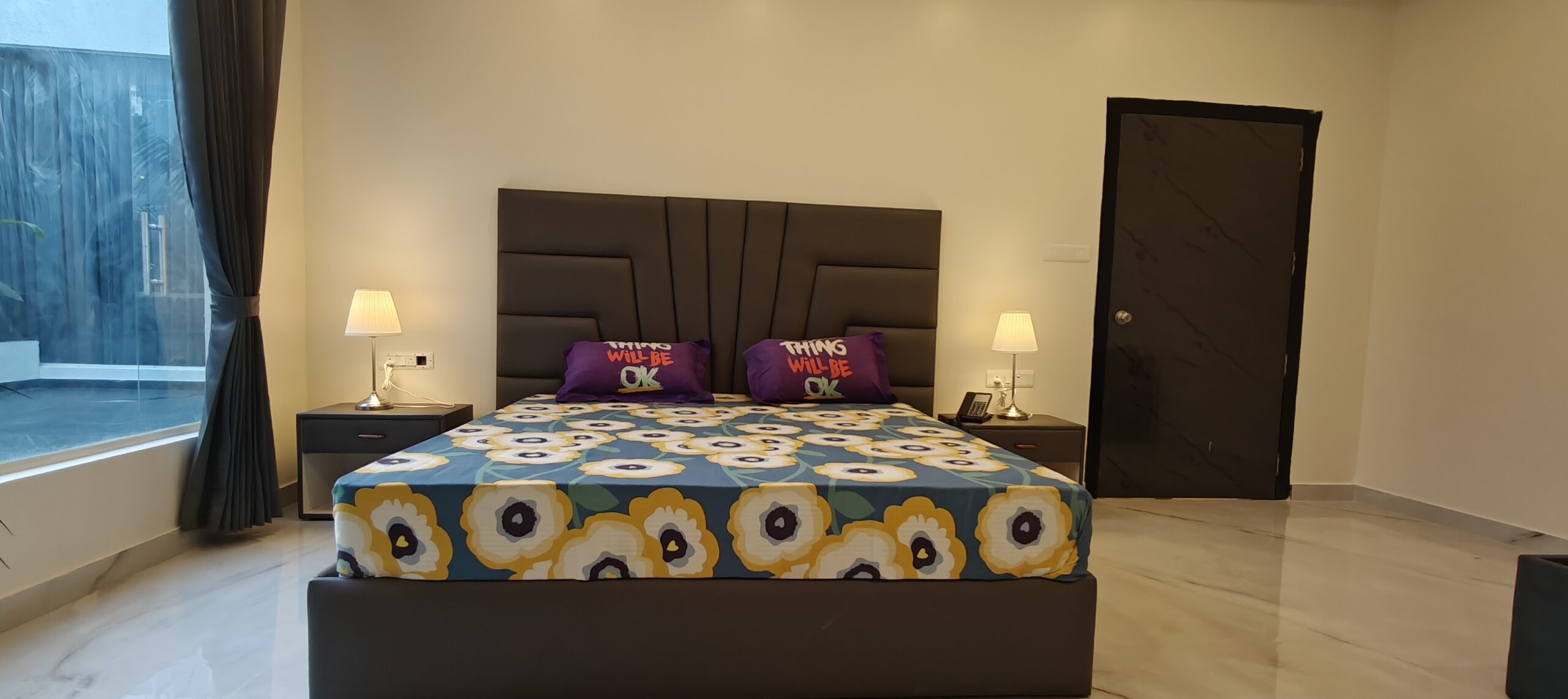 Welcome to Sky Deck, a luxurious 5BHK hotel room located in the bustling area of Thanisandra, Bangalore. Designed to provide an elevated stay experience, Sky Deck combines spacious living with modern amenities, making it the perfect retreat for large families, groups, or corporate travelers seeking both comfort and style.