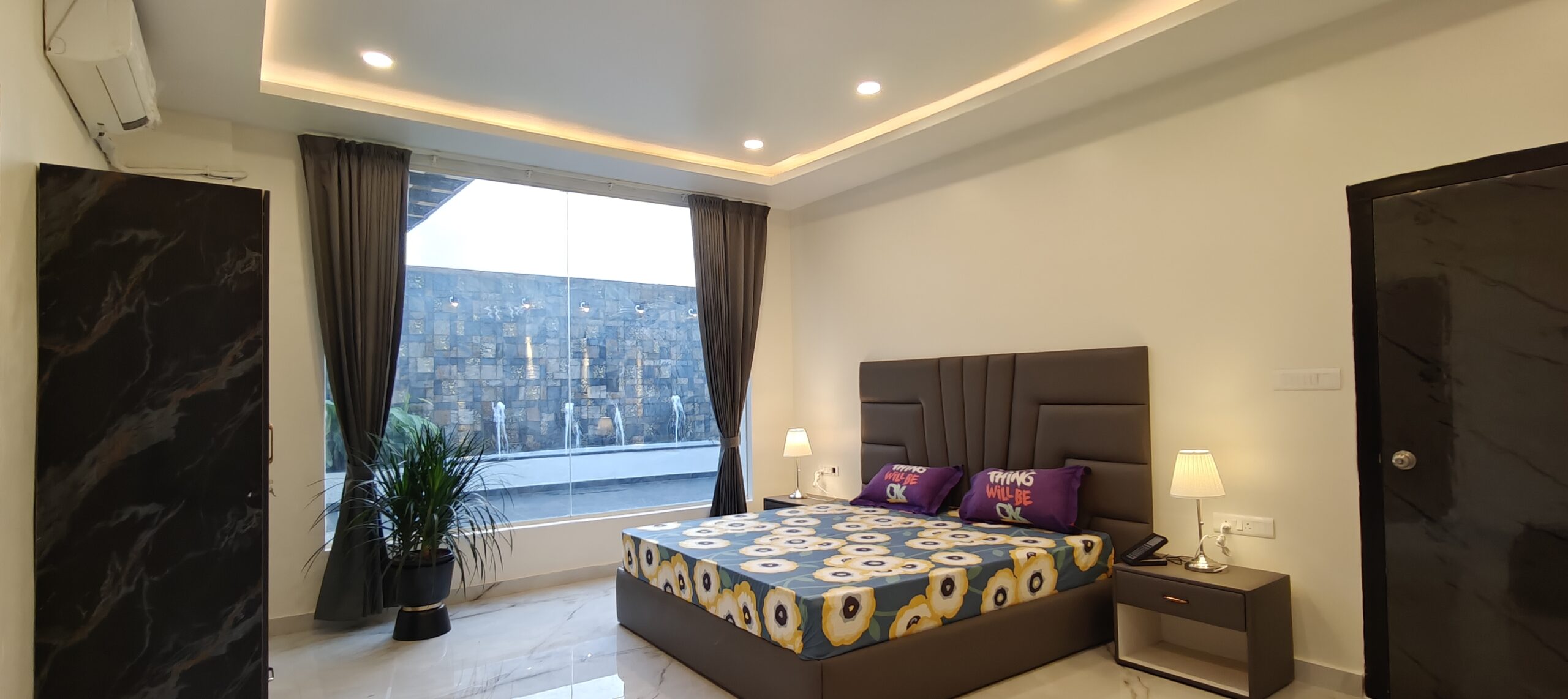 Sky Deck offers five beautifully furnished bedrooms, a private kitchen, and a dedicated restroom, all designed to ensure a relaxing and hassle-free stay. With its spacious interiors, natural airflow, and serene ambiance, Sky Deck provides the ideal setting for extended stays, family vacations, or business trips. Experience the perfect balance of luxury and convenience in a prime location.